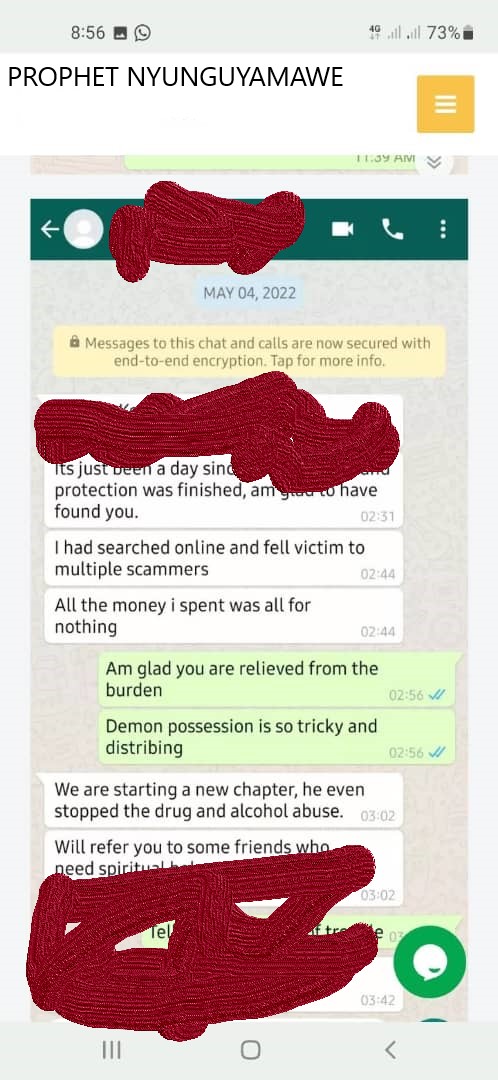 Followers have shared testimonies on how their lives have changed after using his services. If you’re struggling with bad luck and a cloud of negativity, consider reaching out to Prophet Nyunguyamawe through his official number